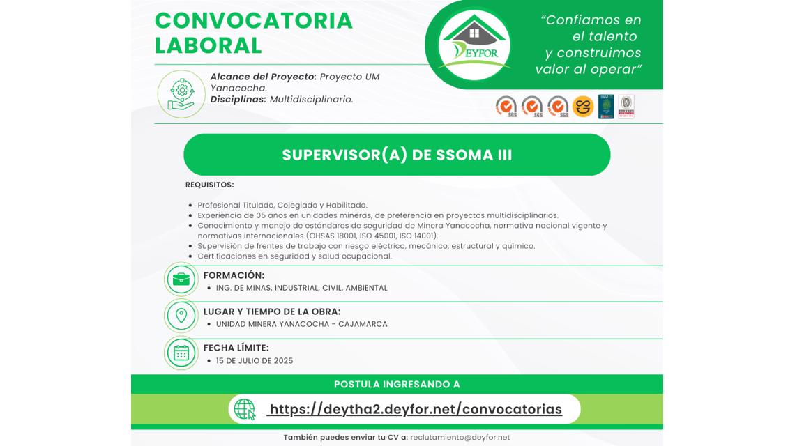 - Conocimiento y manejo de estándares de seguridad de Minera Yanacocha, normativa nacional vigente y normativas internacionales (OHSAS 18001, ISO 45001, ISO 14001).
