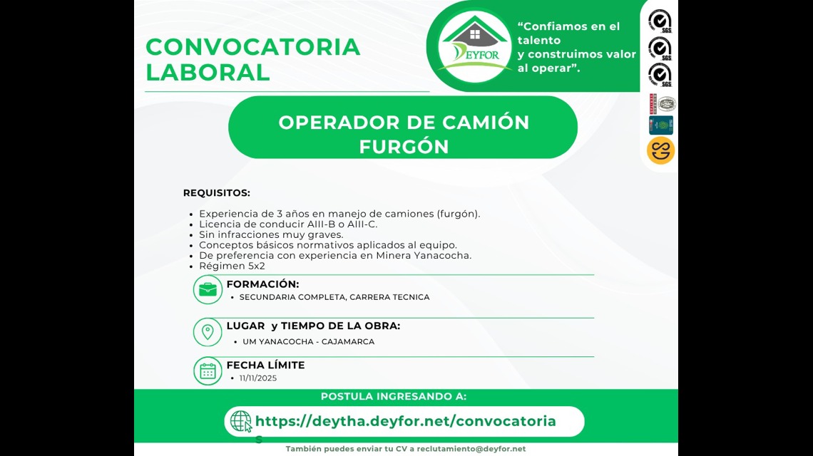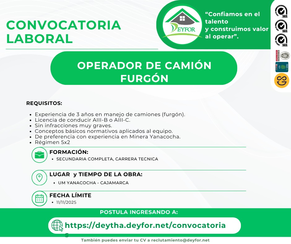 Experiencia 3 años como conductor de camión furgón.